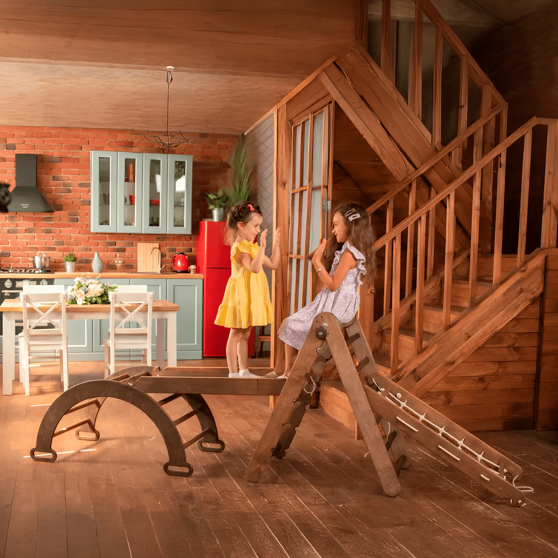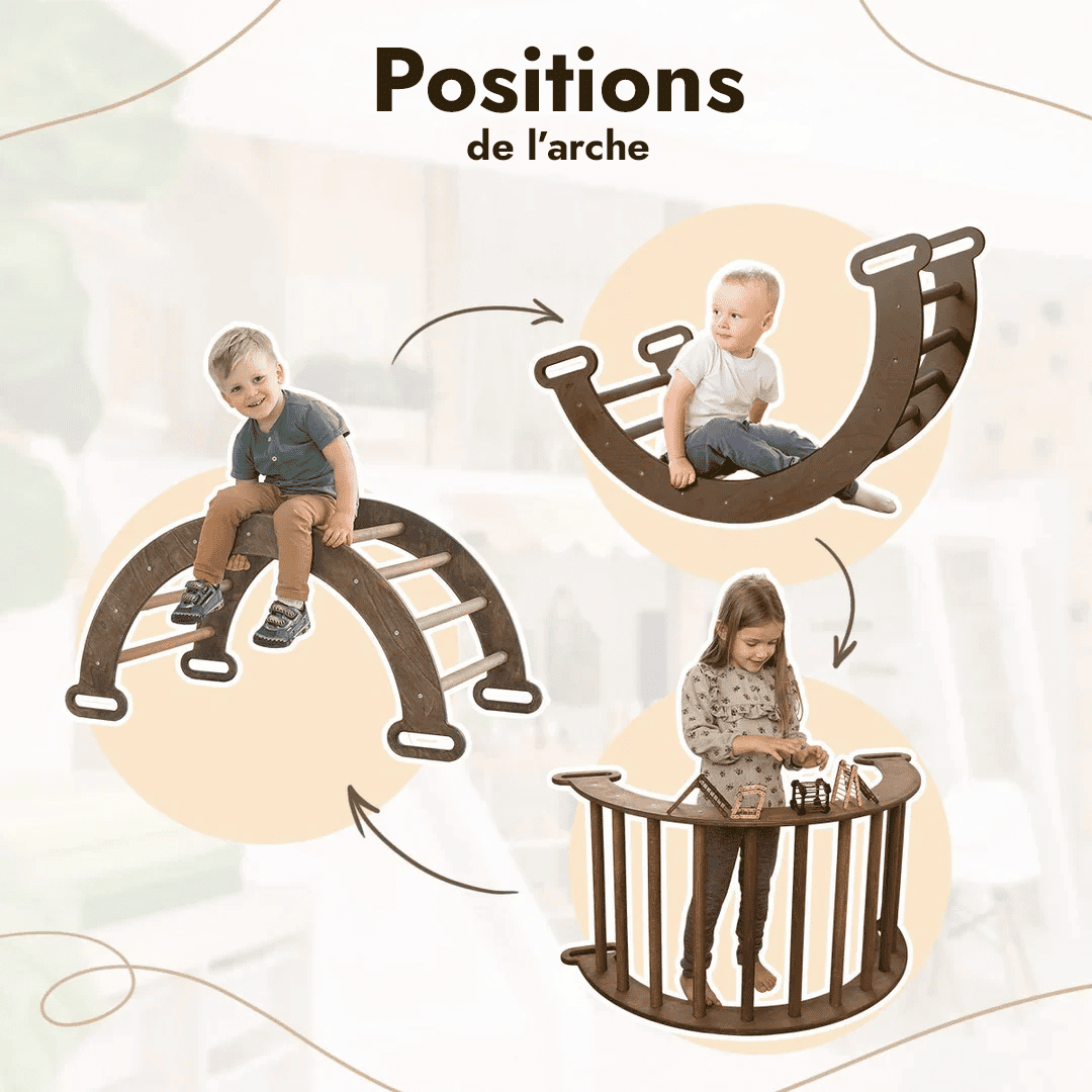Offrez à vos enfants l'opportunité de développer leur équilibre, leur coordination et leur motricité de manière ludique et engageante. Notre ensemble d'escalade Montessori comprend les éléments de base : un arc à bascule, une échelle triangulaire, une glissière/marche double face et de nombreux accessoires. Ce set polyvalent transforme le jeu actif en un véritable outil de développement.