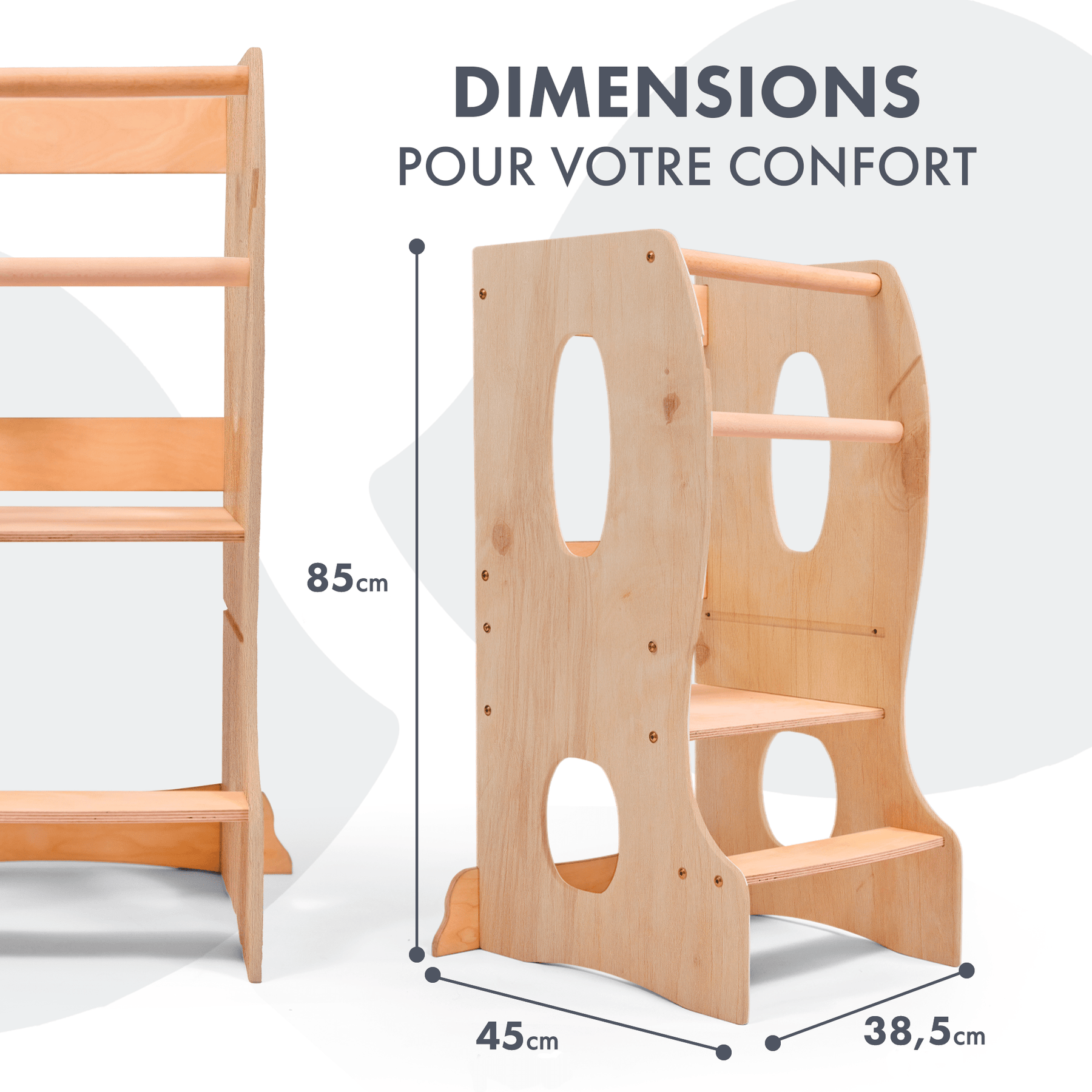 Conception sûre et stable : Construite avec des matériaux durables, cette tour assure une stabilité et une protection maximales à votre enfant. Sa construction robuste empêche tout vacillement, tandis que les rails latéraux offrent une sécurité supplémentaire.
