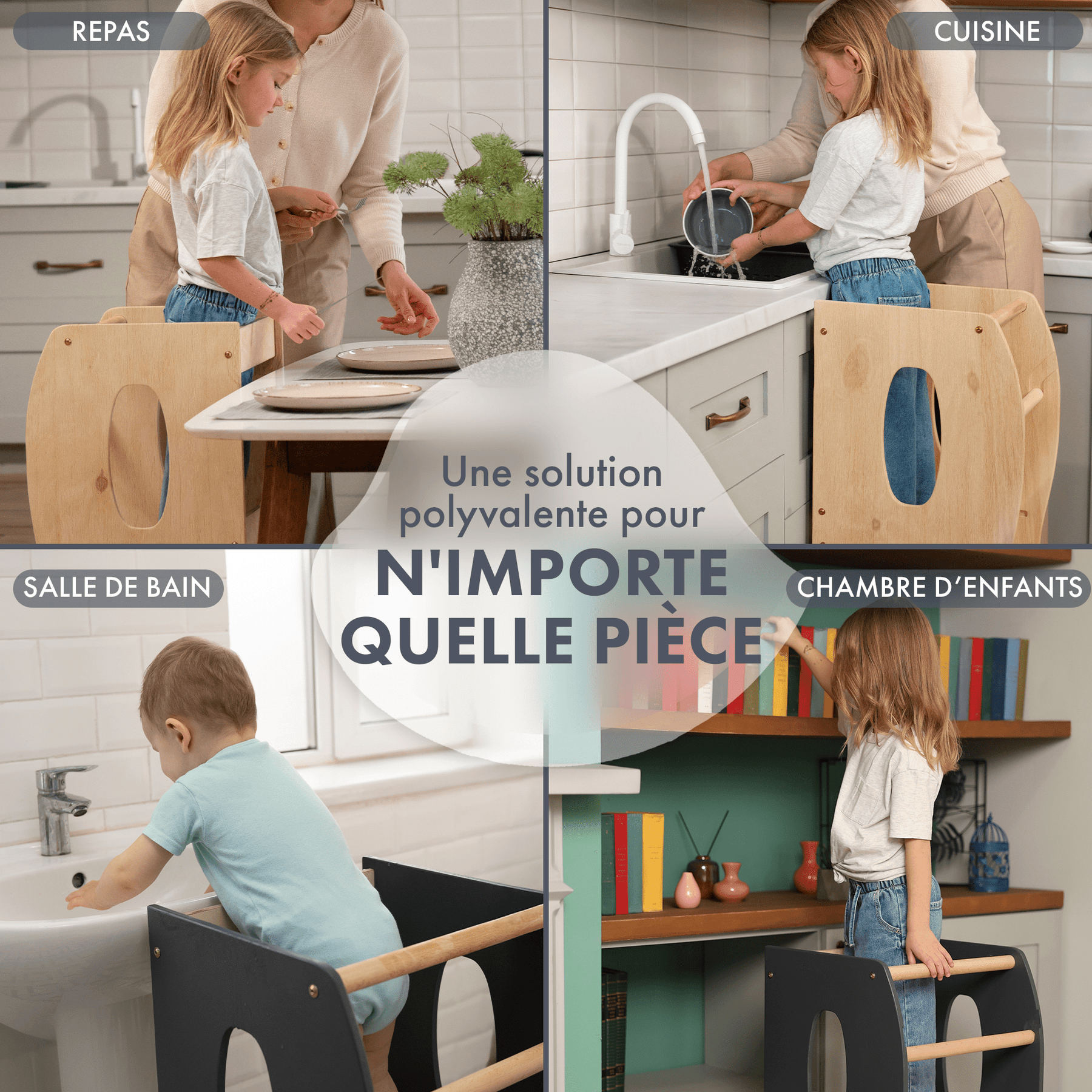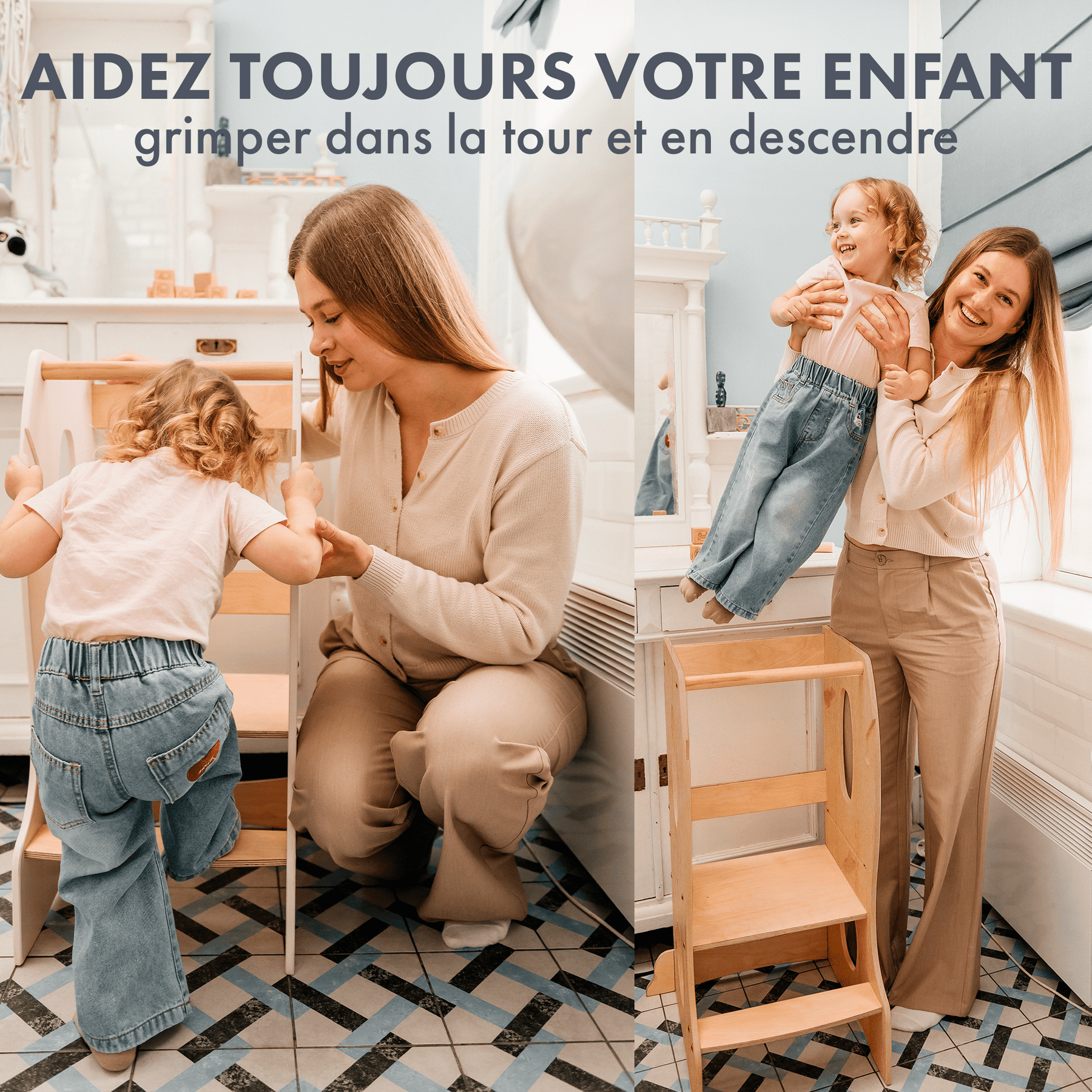 Notre tour d'apprentissage Montessori est la solution idéale pour les enfants âgés de 1 à 7 ans, leur permettant de participer activement aux activités familiales quotidiennes. Avec cette tour, votre petit peut aider à la cuisine, se laver les mains à l'évier, ranger avec vous et s'adonner à d'autres tâches qui sont généralement hors de sa portée.