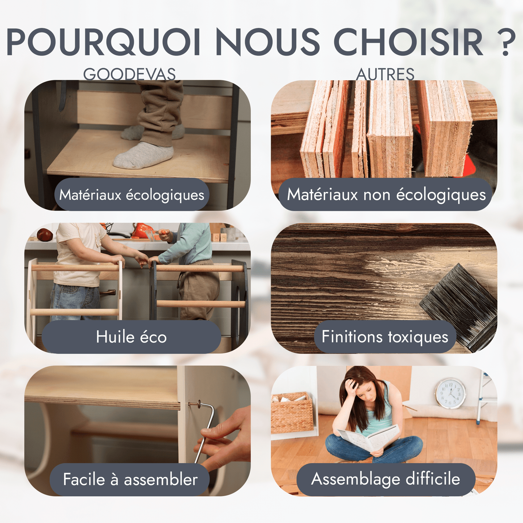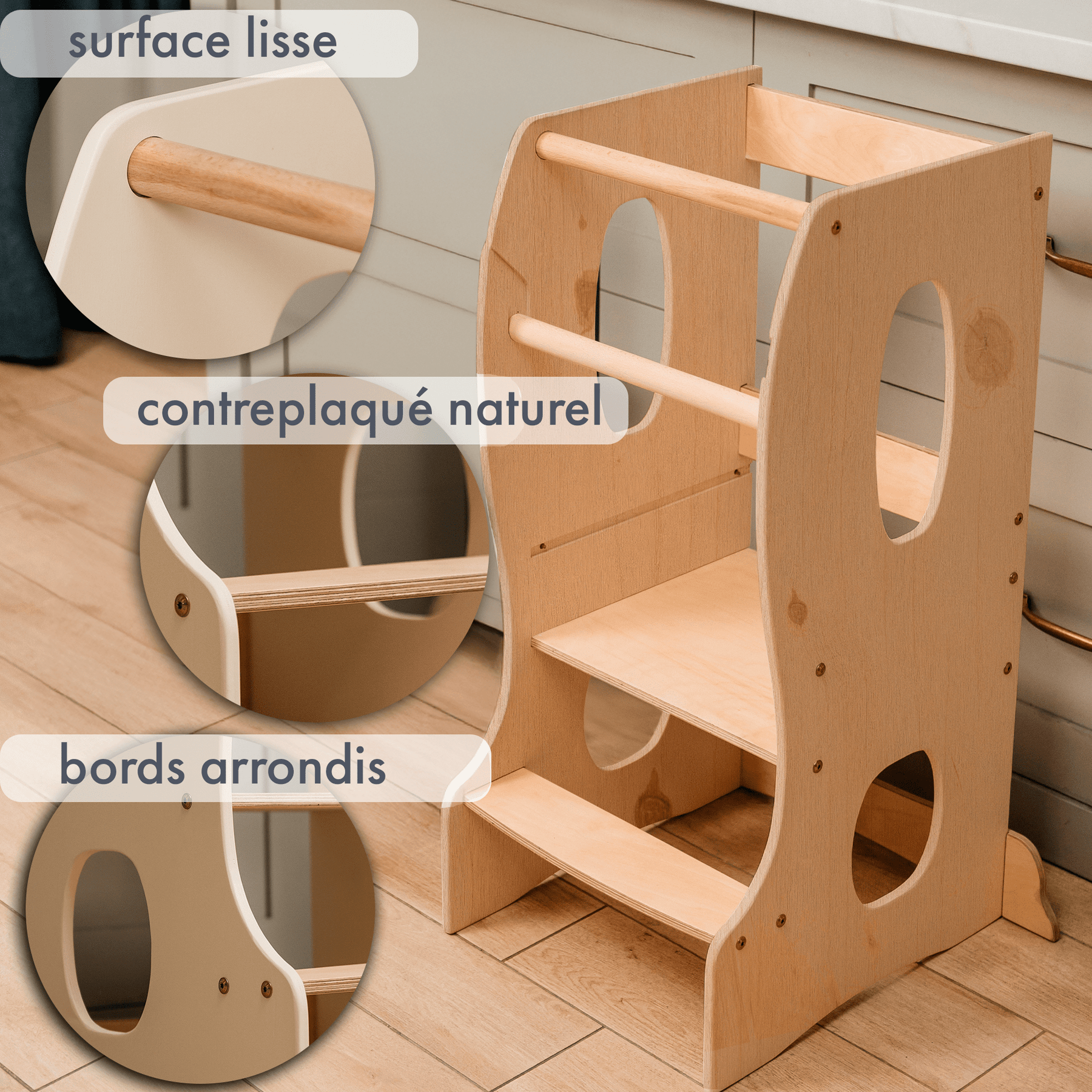 Matériaux écologiques : Fabriquée en bois naturel et finie avec des peintures non toxiques, cette tour d'apprentissage est complètement sûre pour votre enfant et constitue un choix respectueux de l'environnement.