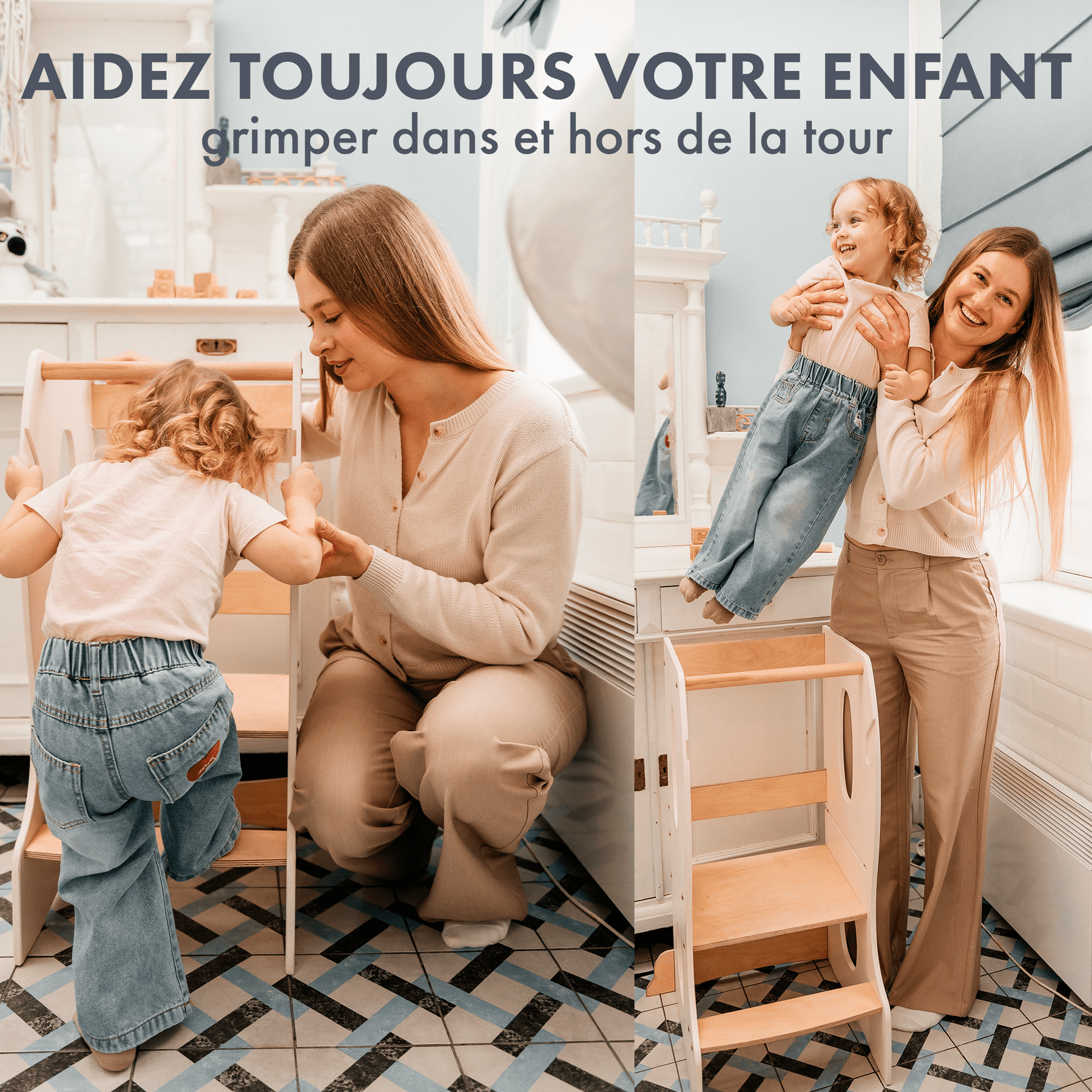• Tour d'apprentissage Montessori : Aide de cuisine - Ivoire Notice pour la tour pour tout-petits